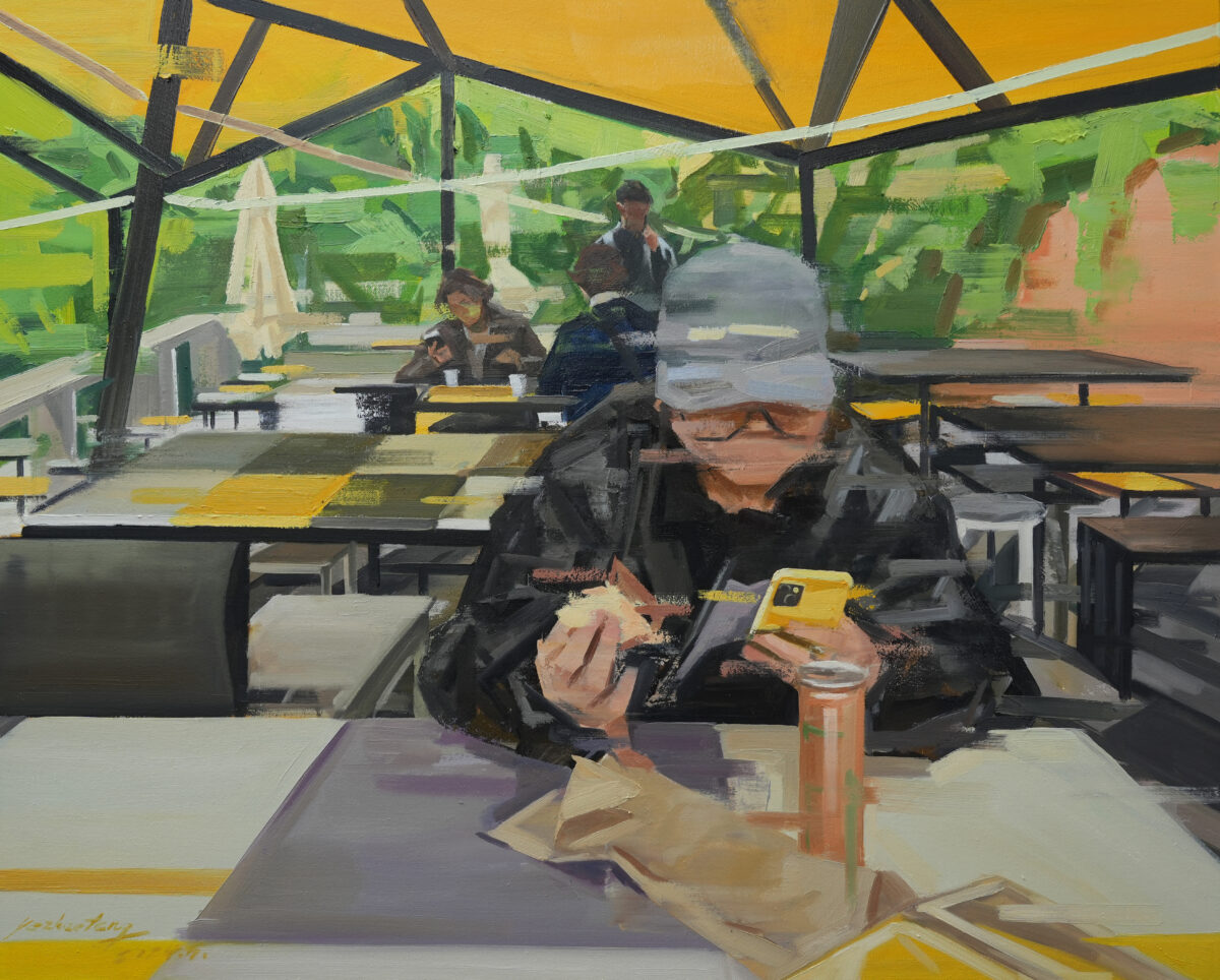 AucArt is pleased to offer new works by Ye Zhaofeng. Ye (b. 1996) is a Chinese artist who lives and works in Hangzhou. Born in Wuxi, he graduated from the China Academy of Art’s Affiliated High School before attending the China Academy of Art (CAA), where he received both a BFA and MFA in the CAA’s Oil Painting Department. Ye’s paintings’ pay attention to the contradictions and conflicts that exist in our reality, highlighting the phenomenon of how digital technology has been a major change in the course of human history. His paintings delve into how interacting with others and communication is now expressed through smart technologies, where the boundaries between physical space and virtual reality become increasingly blurred. The depiction of disconnection and distance is delayed & expressed in his strong use of brushstrokes, visualising the blurred world in which one lives in, and enhances the sense of conflict between the objects and the environment geng stronger. Ye explores a mind that is an ideal life, which is simultaneously near yet far, and attempts to find balance in a stressful life.