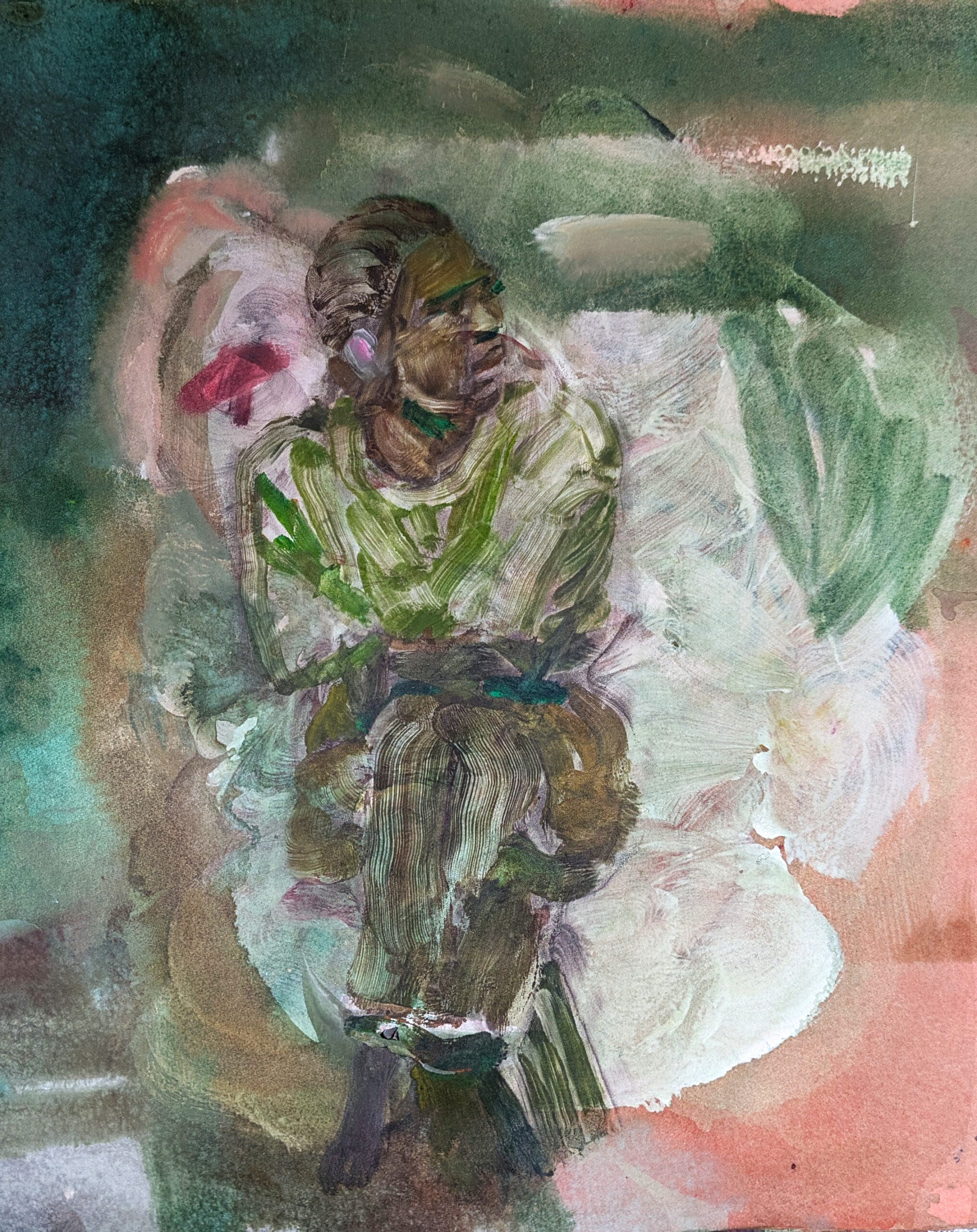 Martha Zmpounou (b.1987, Greece) is a visual artist whose work revolves around the idea of the human figure and portrait as a space of expression and exposure. She see's the human body as a fragmented yet multifaceted entity, an outcome of a process of layering. Working mostly on paper, this layering process is usually expressed with the use of a mix of water-based media, where the artworks are driven forward by the medium’s inherent qualities, its fluid and transparent nature. It is a mode of work that embraces accidental bleeds, unfinished or seemingly underdeveloped areas, next to others meticulously developed in detail. This results in a fragile dynamic balance between abstraction and representation, one which seeks to capture the tonal and morphological particularities of a sitter’s skin or facial characteristics, and in essence, their very self; the transient and ambiguous element in the figure depicted, all that is supposed to be masked and hidden in portrait or figure. This epitomizes a group of work that conceptually is underpinned by an effort to subtly undermine the glorification of an idealized, polished self, complete and coherent, which is usually evident in traditional portraiture. Rather, Martha is drawn towards the incomplete and incoherent, the fragmentary and the cryptic. Martha lives and works in London, UK.
