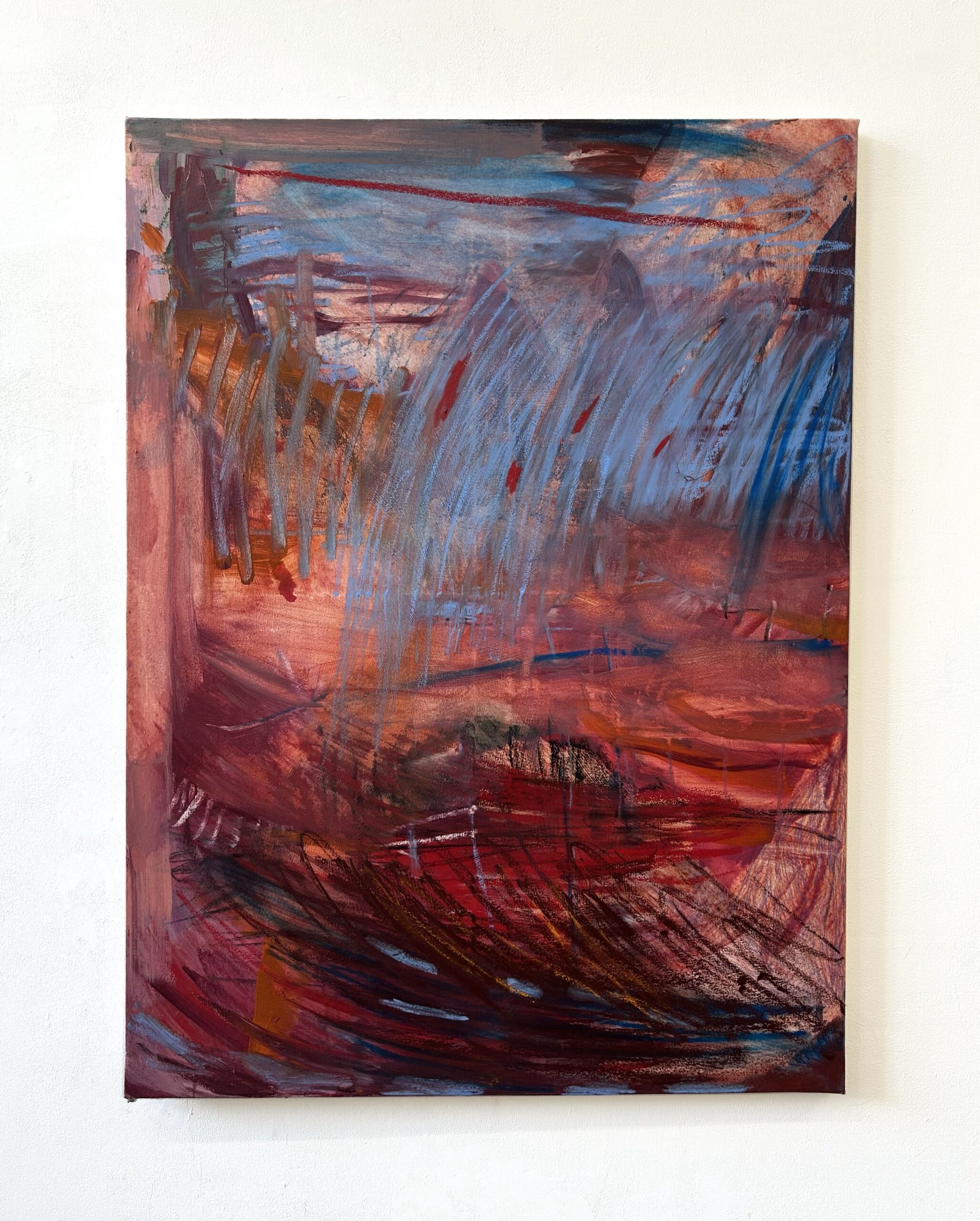 Ellie Walker. 1995, recently graduated with an MA in Fine Art from City & Guilds of London Art School. Ellies' practice is rooted in emotional depth and guided by curiosity, unfolding through drawing and material experimentation. She embraces' being in the discomfort of uncertainty, allowing each work to evolve through cycles of layering, failure, and re-emergence. Drawing is her way into the work, an intuitive process that quiets external noise and internal dialogue. She respond instinctively to mark-making, engaging in a tactile conversation between shape, line, and colour. Often scraping back or erase previous marks, revealing earlier layers and playing with presence and absence. This rhythm of construction and erasure holds the work in a state of tension, open to discovery and resistant to resolution. Painting, for Ellie, is both cathartic and rigorous. By confronting the unpredictability of the process, she navigates emotional landscapes, transforming sensations of anxiety and overstimulation into something material. When a painting stalls, she deliberately takes risks through bold gestures, ambiguous forms, or obliteration, disrupting what’s known to access new, unexpected routes. Ultimately, her work is an introspective investigation of the unknown, they are psychological terrains that reflect evolving emotional states. These pieces invite a wide spectrum of responses, mirroring the vulnerability and openness of their making.