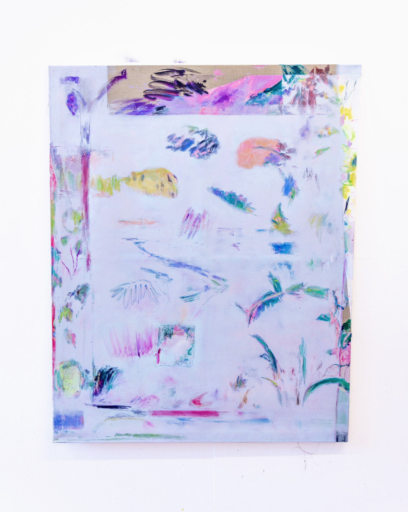 Lucy De Roepers' practice investigates how forms emerge through drawing, painting, and memory, with surfaces evolving through chance encounters between marks, gestures, and erasure. She is drawn to the instability of images; photographs, drawings and structures inform early stages, but essentially the work unfolds through physical painting and editing. The surface becomes a space where memories and earlier marks unpredictably resurface, shaping the composition. There is a balance between raw energy and structure. Recently, she has explored how hidden layers create a sense of mystery, as if something lies waiting to be revealed. Inspired by Pallasmaa’s The Eyes of the Skin, Lucy considers how viewers engage with texture, layering, and spatial atmosphere. Carl Jung’s Man and His Symbols also informs her thinking, especially around unconscious imagery and symbolic memory. Drawing is central to her process, acting as a gestural foundation. These drawings, often done in natural settings like gardens, quietly anchor and guide the evolving painting.
