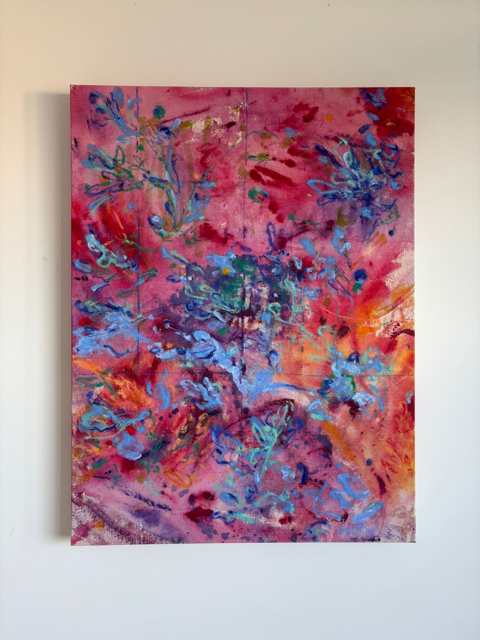 Acrylic, chalk pastel, oil pastel & spray paint on unprimed canvas