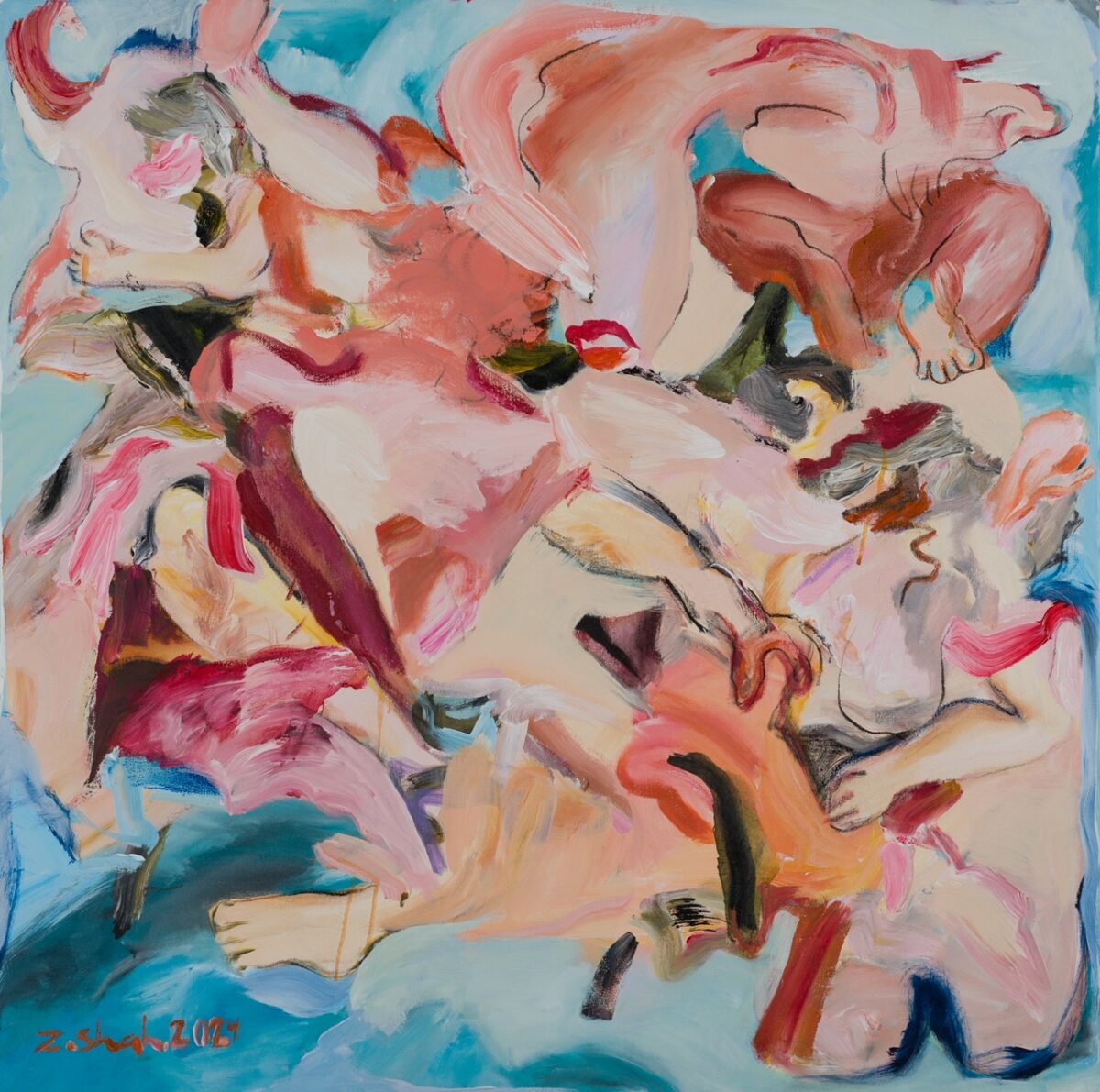 Zahra Shahcheraghi (b. 1989 Tehran) explores themes of figuration, the human body and the concepts of sexuality. Inspired by the imaginations and curiosities of her childhood, the artist attempts to portray the concealed layers of the private sphere through the experience of womanhood. Imaginations that fade in a whimsical aura of vapour, combined with an arranged chromatic palette and the use of both abstract and figurative elements narrate the artist’s personal perception of the female body and her journey of self-discovery. Shahcheraghi has participated in several solo and group exhibitions since 2018.