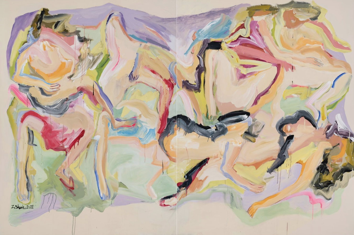 Zahra Shahcheraghi (b. 1989 Tehran) explores themes of figuration, the human body and the concepts of sexuality. Inspired by the imaginations and curiosities of her childhood, the artist attempts to portray the concealed layers of the private sphere through the experience of womanhood. Imaginations that fade in a whimsical aura of vapour, combined with an arranged chromatic palette and the use of both abstract and figurative elements narrate the artist’s personal perception of the female body and her journey of self-discovery. Shahcheraghi has participated in several solo and group exhibitions since 2018.