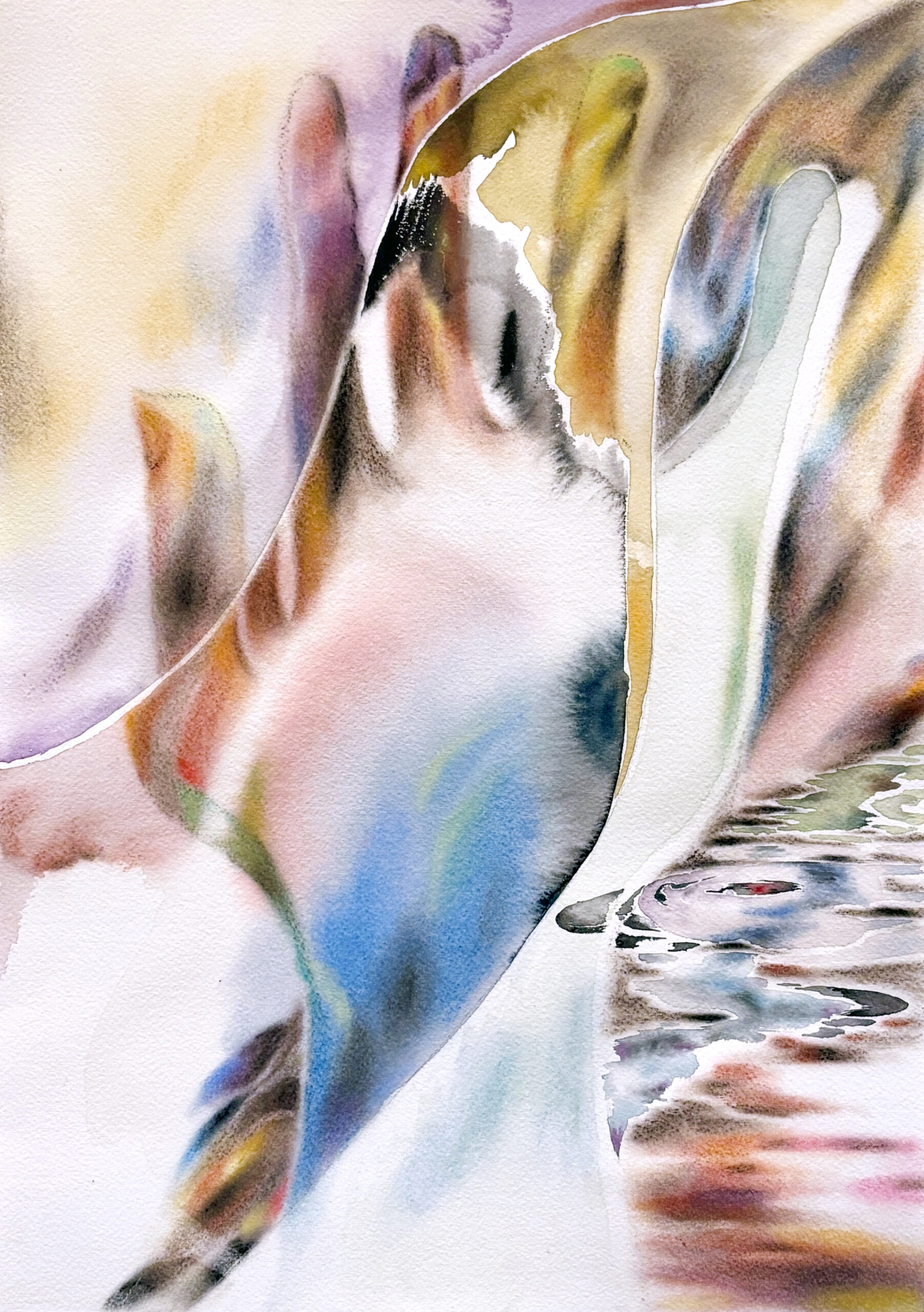 Leah Huang (b.1992, Wuhan, China) is a self taught artist based in Brooklyn, NY. She began developing her visual language in painting through the practice of analog photography, while working in fashion for international houses such as Maison Margiela and Helmut Lang, for over a decade. Her visual practices interweave a symbolic vocabulary with the power of chance. In exploring her relationship with watercolor and working on paper: she utilizes an intuitive approach which cultivates trust and resilience through material restraint. The paintings occupy the unconscious space between abstraction and figuration, suggesting contradictions and the unresolved zones of life. Leah’s work has been included in exhibitions across the tri-state area and is in private and corporate collections across the U.S. Recent exhibitions include: An Interpreted World Is Not A Home with Tempest Gallery, Annual Works on Paper Exhibition with Visionary Projects. Recent residencies include the summer residency program at Orein Arts, and Openings NY. In addition to her work as an artist, she has also co-curated two group exhibitions in 2024, culminating in Studio 9D in Chelsea and Living Skin in Brooklyn. In the last year, Leah has also begun leading a series of intuitive watercolor workshops “Gesture As Trust” at Tempest Gallery in Ridgewood.