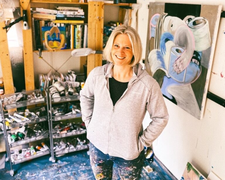 Rebecca Sammon (b.1984, British) is a contemporary visual artist whose bold, poetic pieces pulse with vibrant immediacy. Often Rebecca’s pieces are inspired by abstracted elements of nature at play with human forms within imagined landscapes, moving from suggestions of mythical narrative into the more ambiguous, fluid space of uncertainty. The balance of delicate figures move weightlessly through the work and the often bold colour combinations transport the figures from reality to a dream state world. Rebecca lives and works in London, UK.